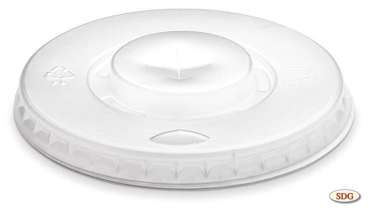 This lid is equipped with a central cross-cutting for inserting a straw.