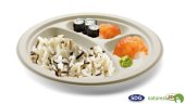 Cette assiette en fibres extraites de la canne à sucre possède 3 compartiments, l'idéal pour entrées de mer ou de…