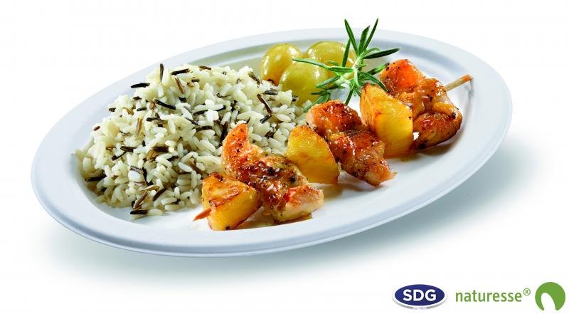 L'assiette ovale plate en fibres extraites de la canne à sucre est correctement éliminée en milieu humide (ordures et déchets de repas, cuisines et matières organiques) par compostage et biodégradation.
