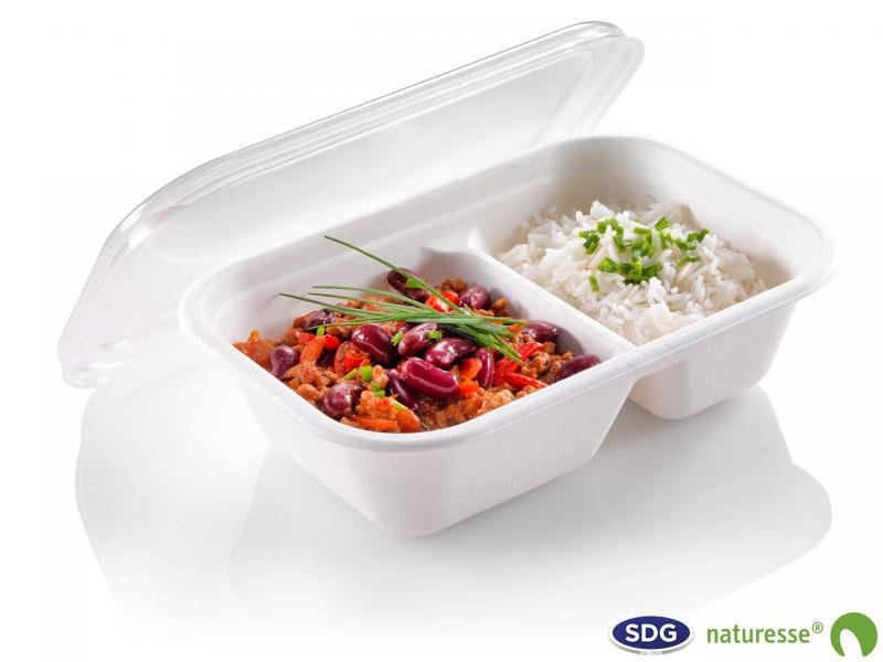 Barquette en pulpe de cellulose, idéal pour take away, 2 compartiments 1000 ml.