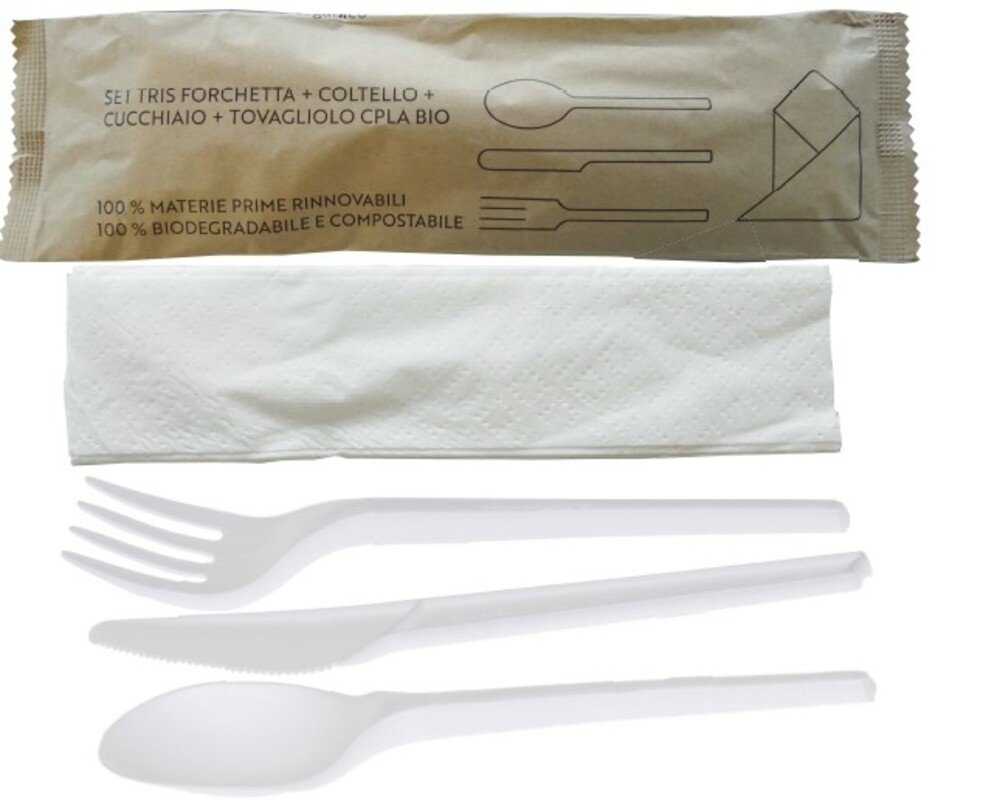 SET TRIS FOURCHETTE-COUTEAU-CUILLERE + SERVIETTE CPLA BIO 26889