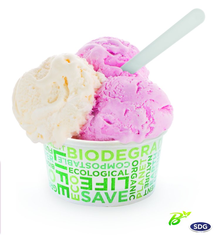 Coupelle à glace en carton pure cellulose accouplé à chaud avec un film en PLA.