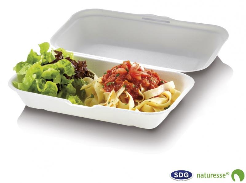 Food Box large richiudibile in polpa di cellulosa, naturale ed ecologicamente sostituita alle tradizionali vaschette in alluminio e polistirolo.