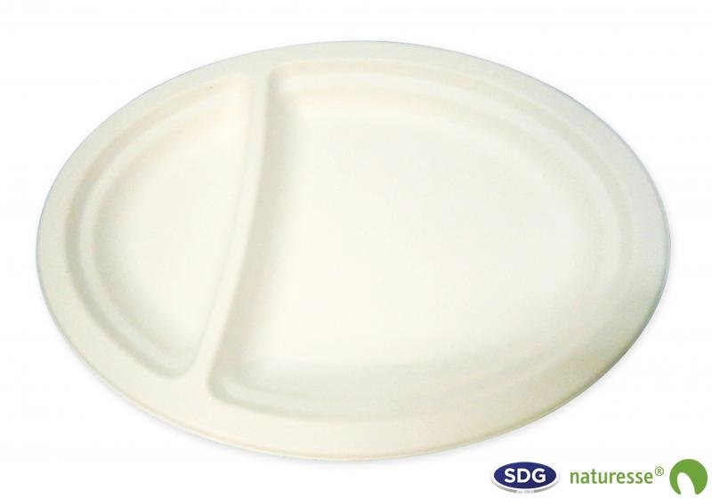 Piatto ovale biscomparto in polpa di cellulosa, 100% bio e compostabile.