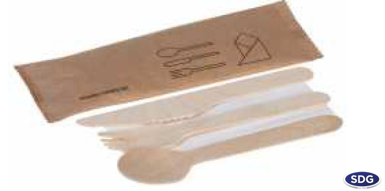 SET TRIS FORCHETTA COLTELLO CUCCHIAIO TOVAGLIOLO IMBUSTATI LEGNO 20380