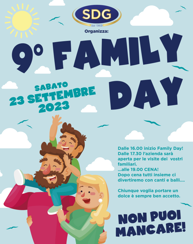 “La direzione, ma, soprattutto a livello personale, intendo ringraziare tutti i lavoratori SDG che hanno partecipato al ritorno, finalmente, del "Family day" portando i propri famigliari che hanno potuto così far parte, anche solo per un giorno, dell'azienda. Per la cronaca eravamo circa 400 persone, un record. Un ringraziamento particolare va sicuramente a tutti coloro che hanno voluto il ritorno del "Family day" e si sono impegnati a fondo nella preparazione, e ripristino del locale adibito ma soprattutto nella realizzazione di questo importante giorno rendendolo veramente conviviale. Inoltre, vedere degli ex dipendenti in pensione attivarsi per far sì che tutto vada per il meglio è, credetemi, un grande orgoglio perché vuol dire che si è instaurato un rapporto che va al di là del semplice lavoro.
